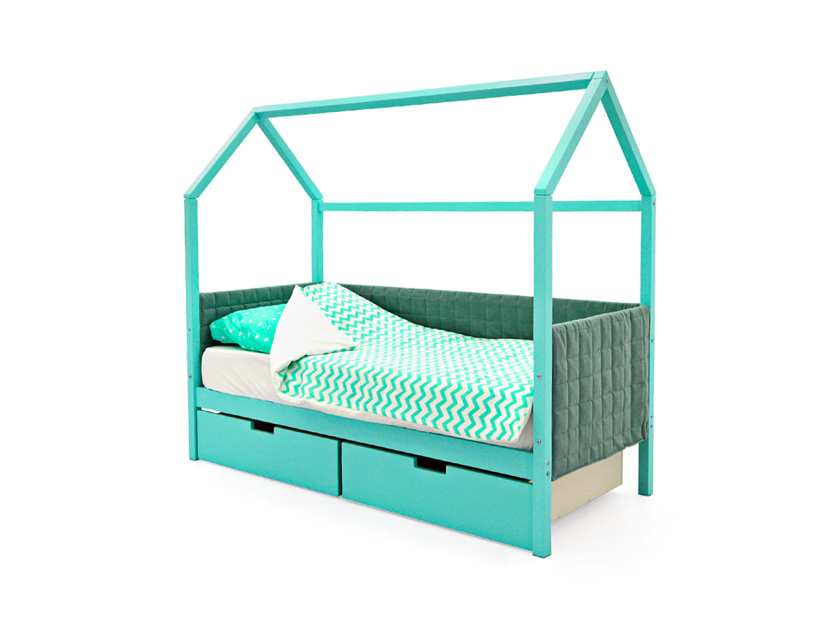 - Кровать-домик мягкий Svogen с ящиками мятный