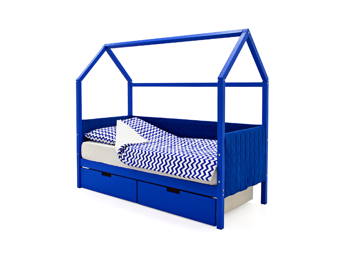 - Кровать-домик мягкий Svogen с ящиками синий
