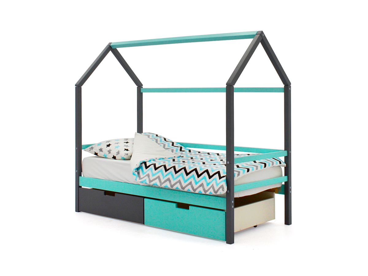 - Кровать-домик Svogen с ящиками графит-мятный