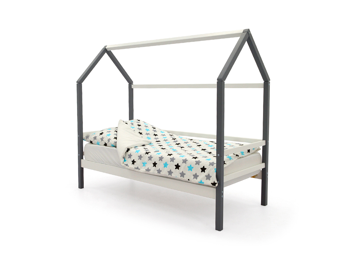 - Кровать-домик Svogen с ящиками и бортиком графит-белый