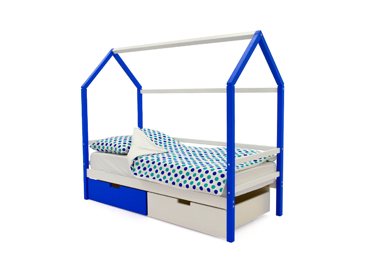 - Кровать-домик Svogen с ящиками сине-белый