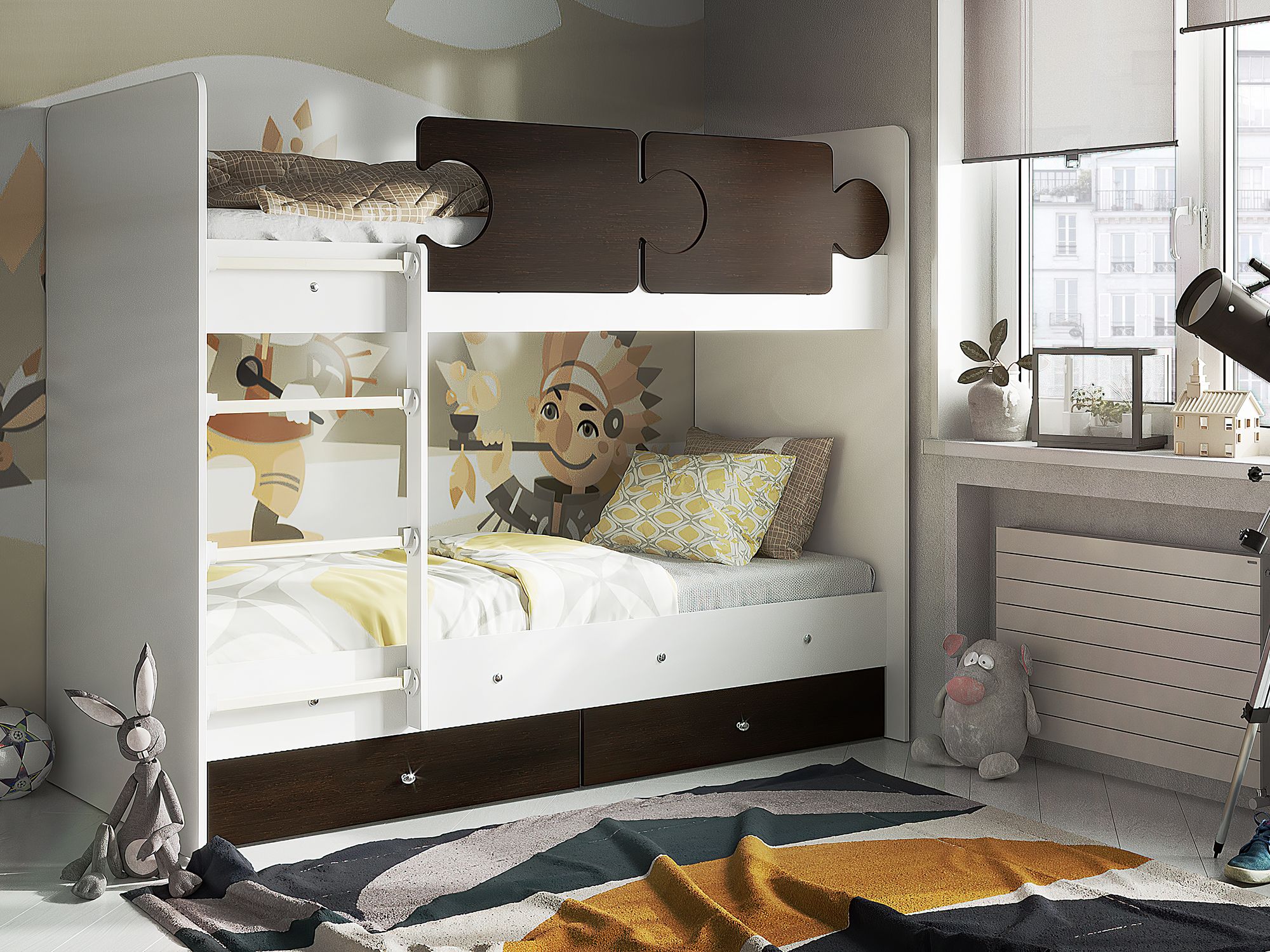 Кровать двухъярусная Тетрис латы с бортиками белый-венге