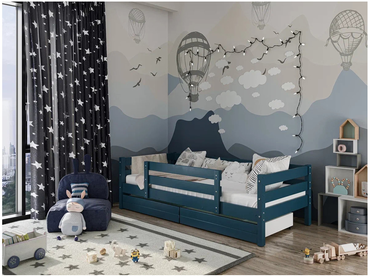 - Кровать Глория с бортиком и ящиками Сапфировый