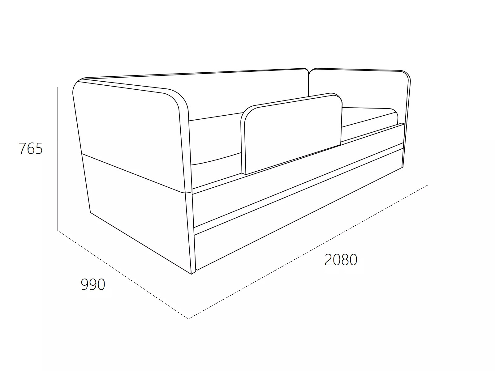 Выдвижной ящик можно использовать в качестве дополнительного спального места (разместив дополнительный беспружинный матрас 1900 х 800 х 140 мм) или для хранения белья и игрушек.