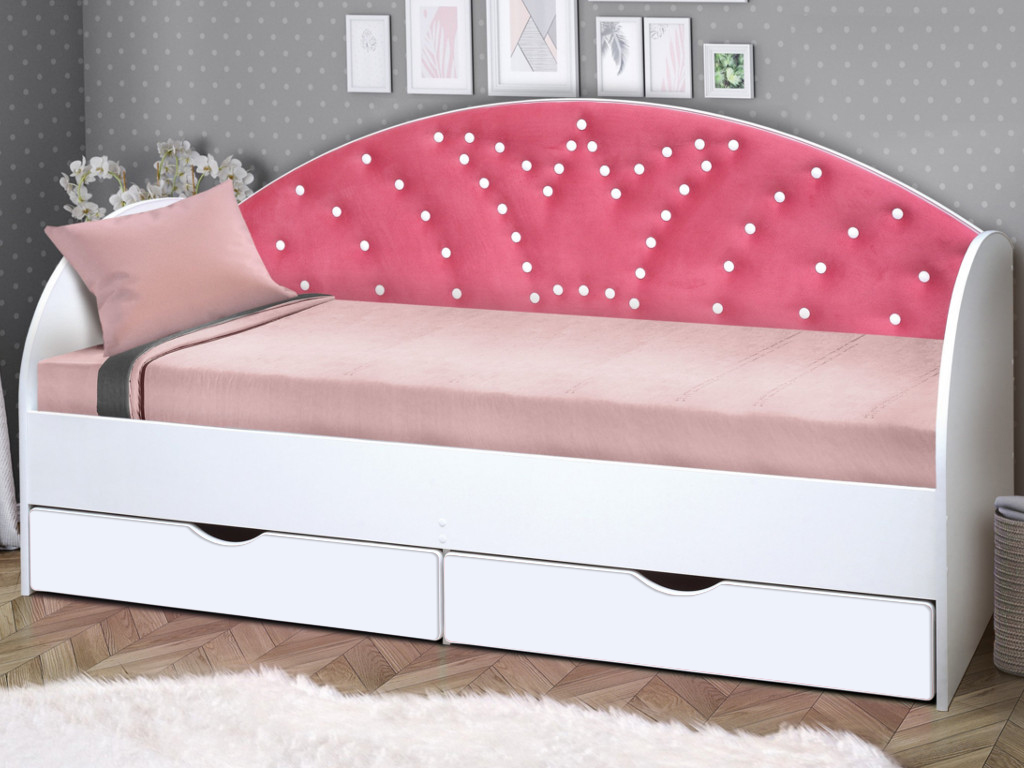 - Кровать с продольной мягкой спинкой Корона №1 800х1600 мм белая