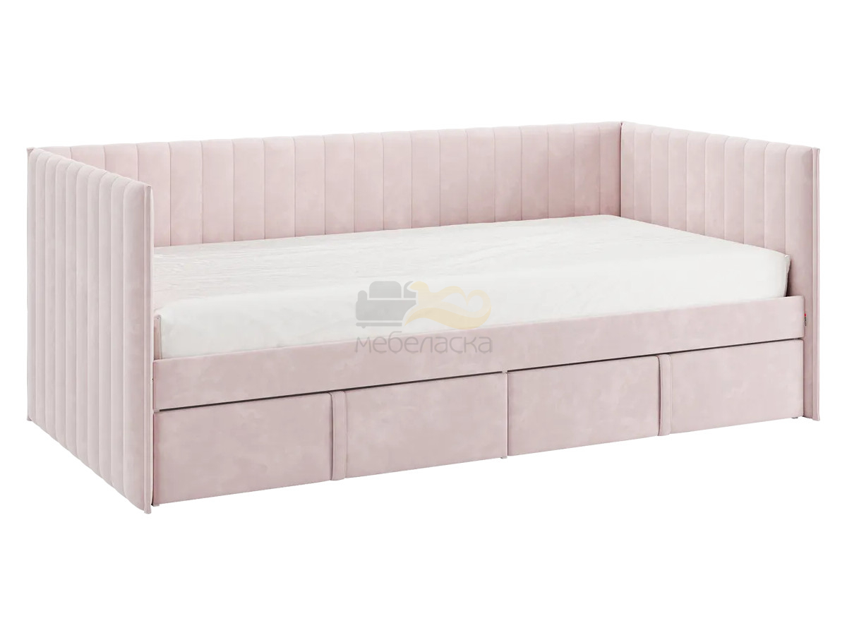 - Кровать-софа с ящиками Твикс цвет велюра нежно-розовый