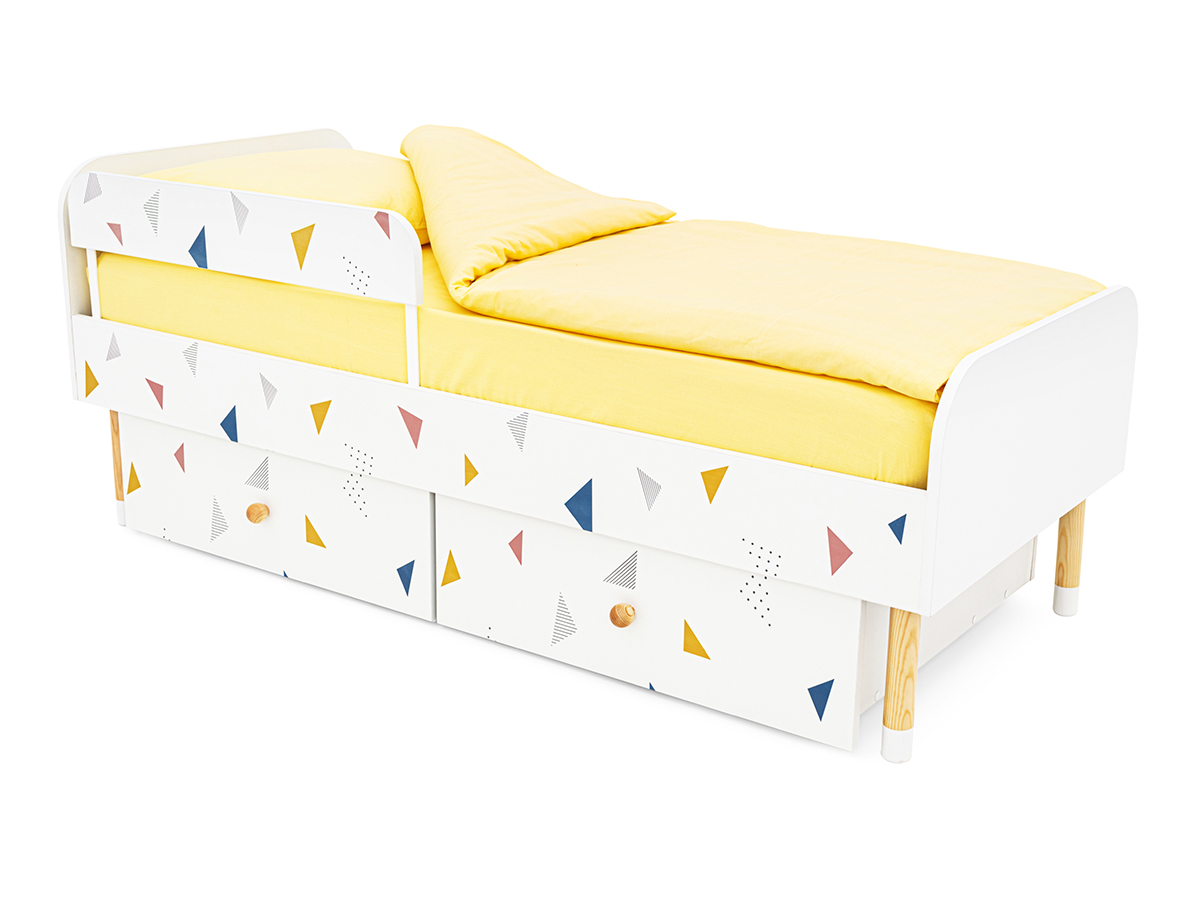 - Кровать Stumpa Классика с бортиком и ящиками Треугольники желтый, синий, розовый