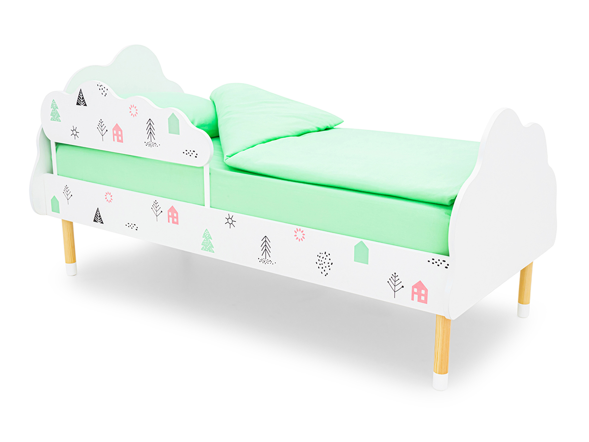 - Кровать Stumpa Облако с бортиком рисунок Домики розовый, бирюзовый