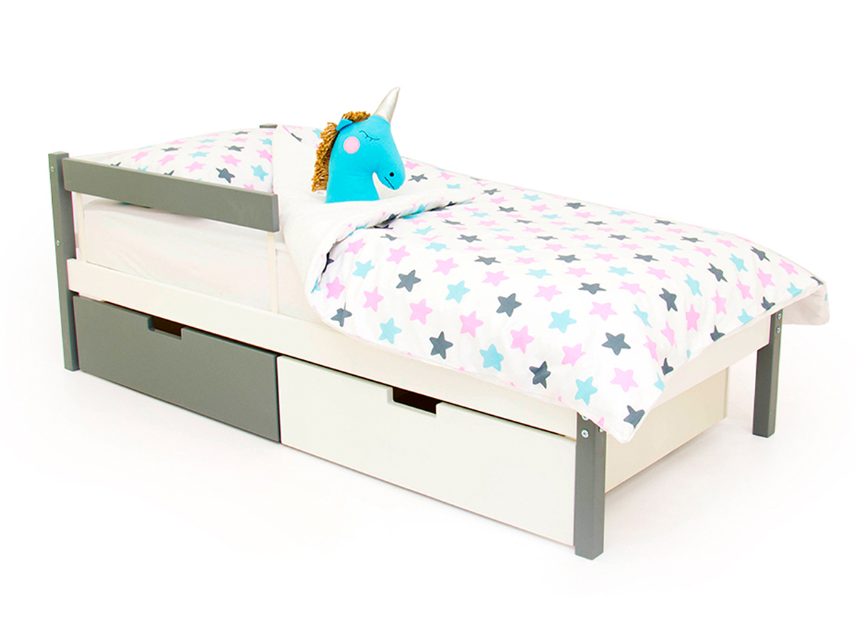 Кровать Svogen classic с ящиками и бортиком графит-белый