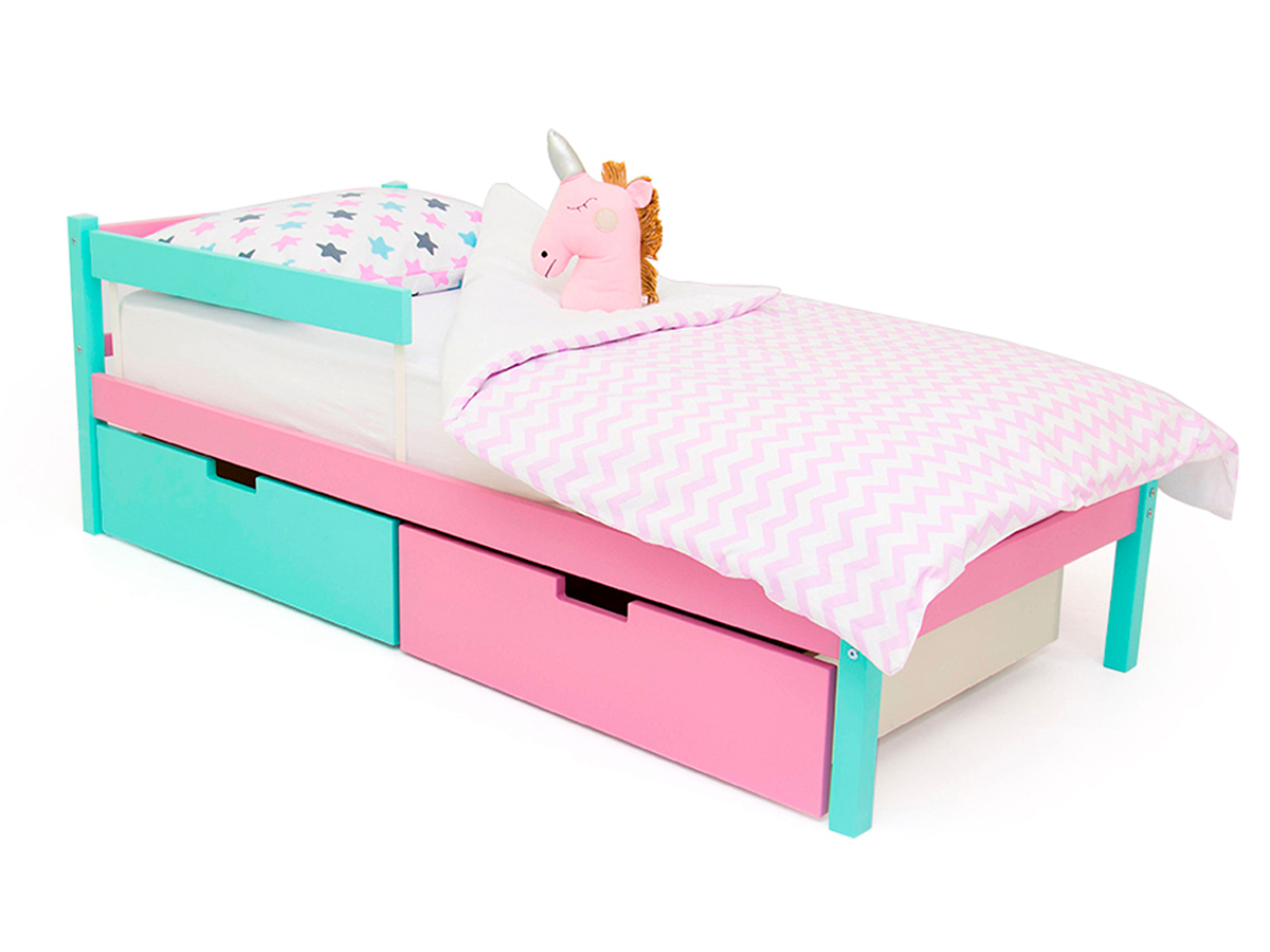 Кровать Svogen classic с ящиками и бортиком мятный-лаванда