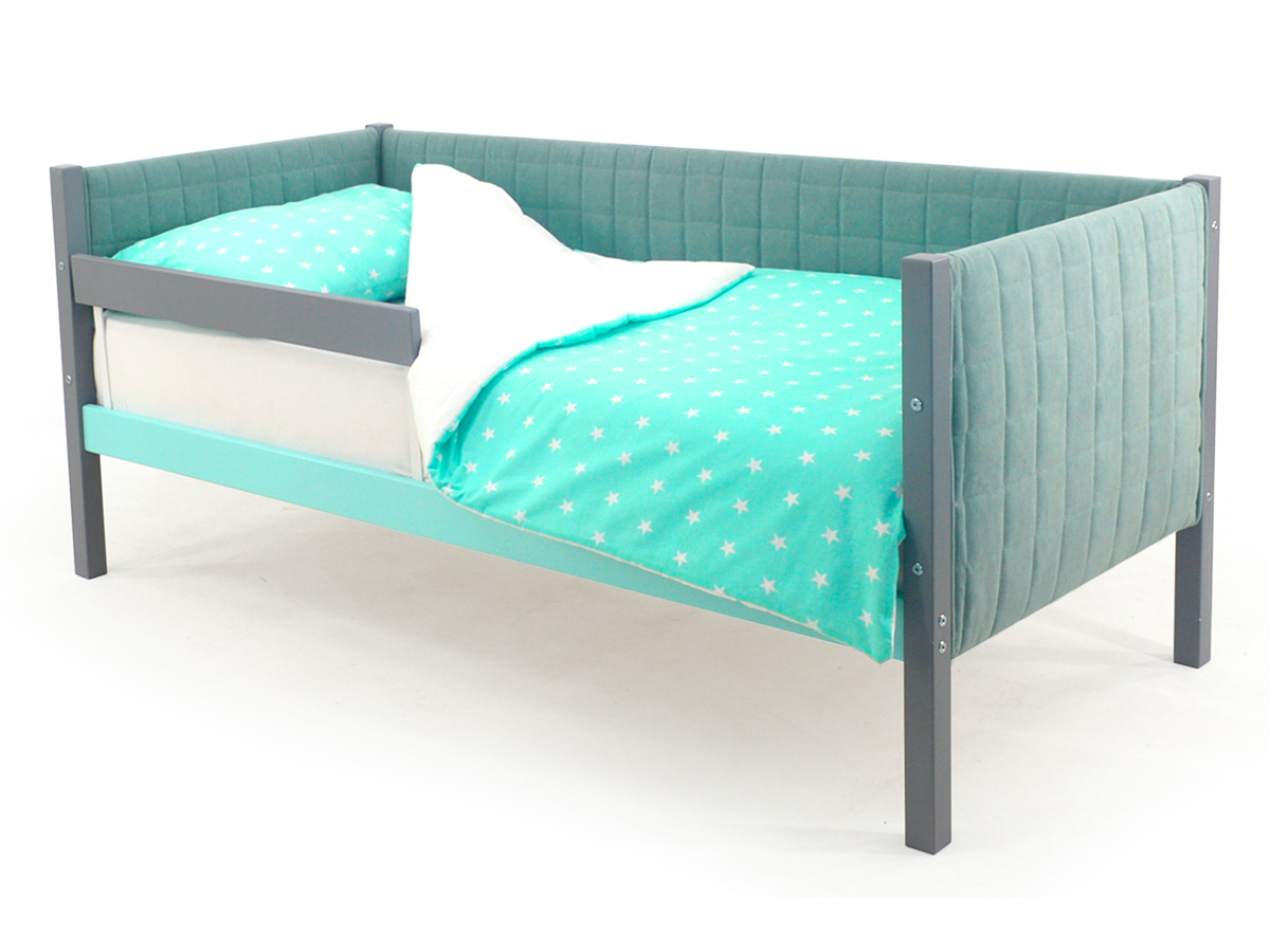 - Кровать-тахта мягкая Svogen с бортиком графит-мятный