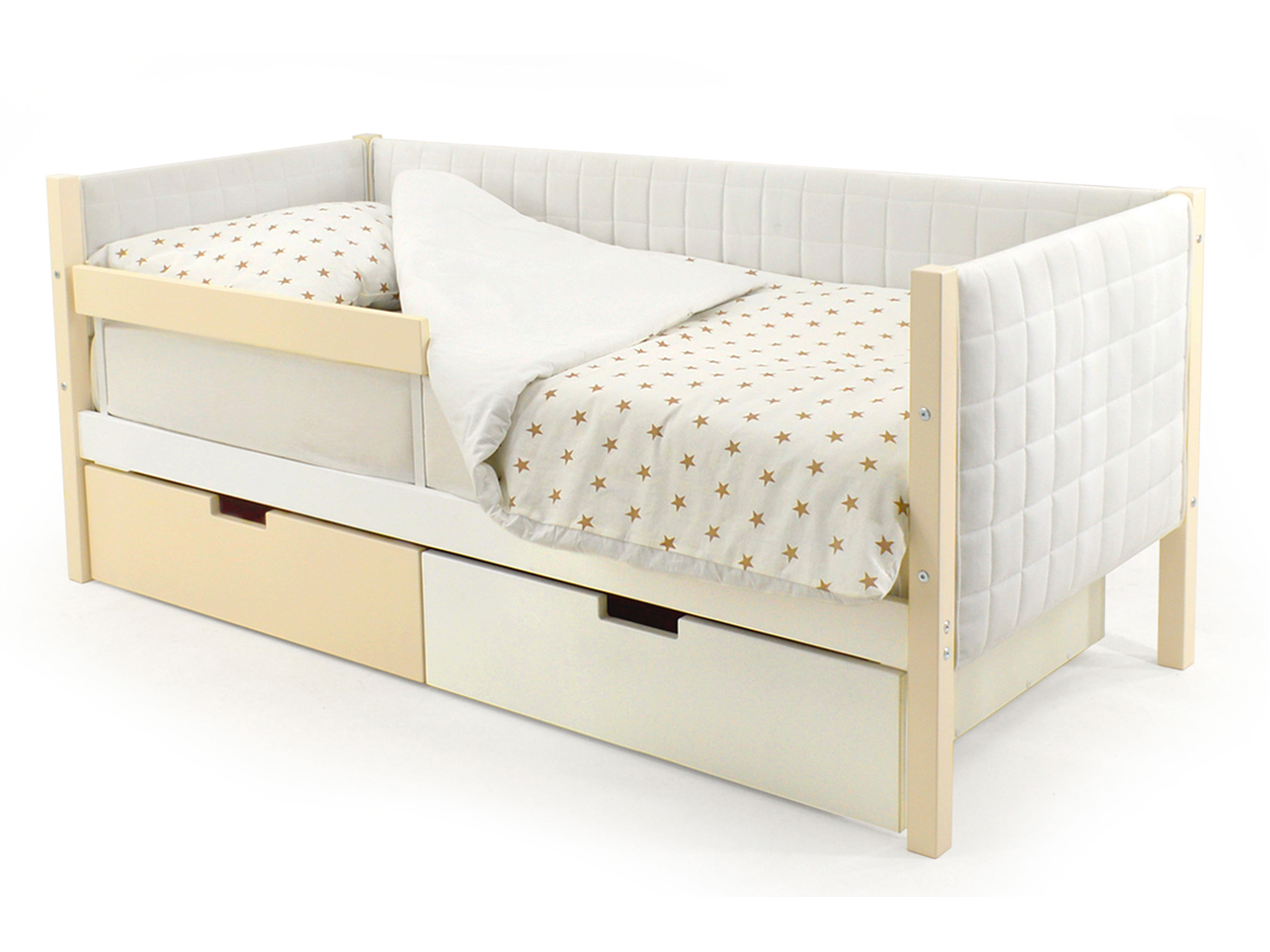 Кровать-тахта мягкая Svogen с ящиками и бортиком бежево-белый