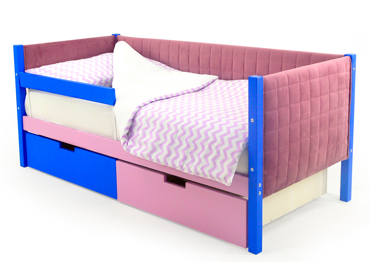 Кровать-тахта мягкая Svogen с ящиками и бортиком синий-лаванда