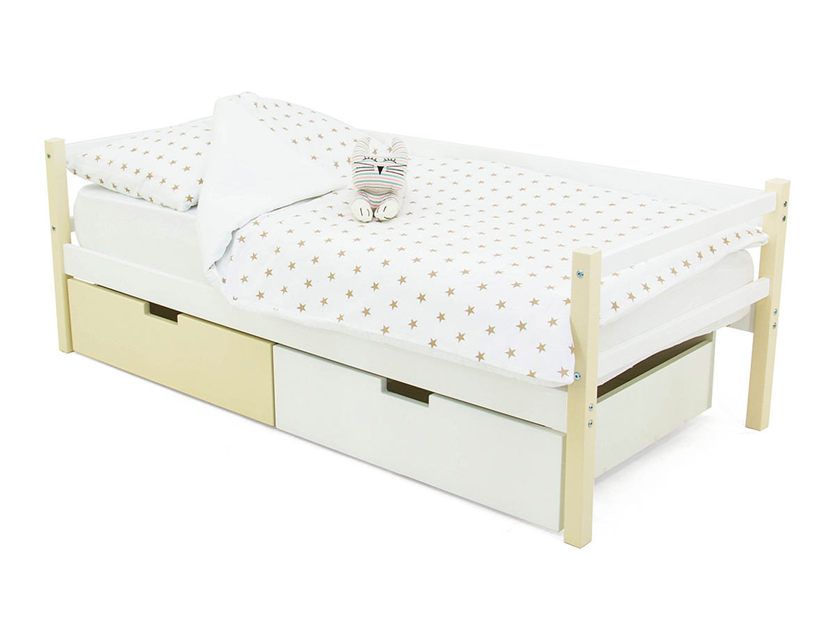 Кровать-тахта Svogen с ящиками бежевый-белый