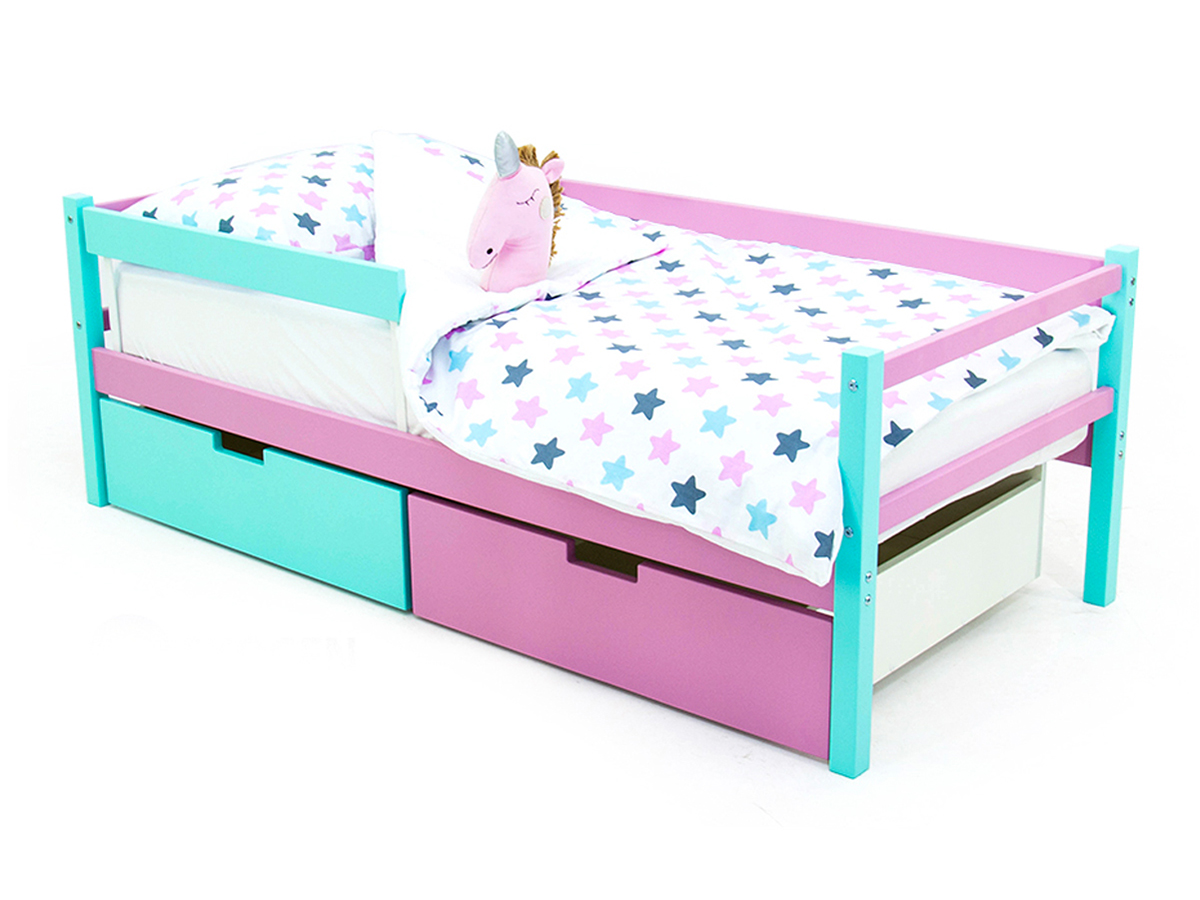 Кровать-тахта Svogen с ящиками и бортиком мятный-лаванда