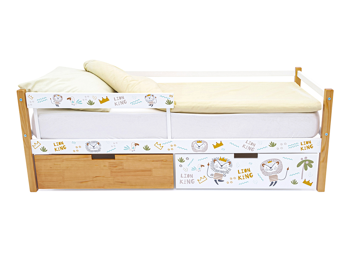 Кровать-тахта Svogen с ящиками и бортиком с фотопечатью дерево/львята