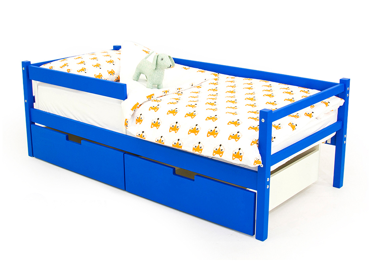 Кровать-тахта Svogen с ящиками и бортиком синий