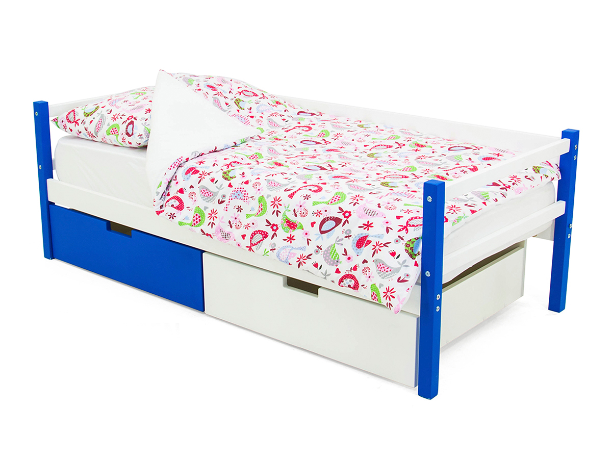 Кровать-тахта Svogen с ящиками сине-белый