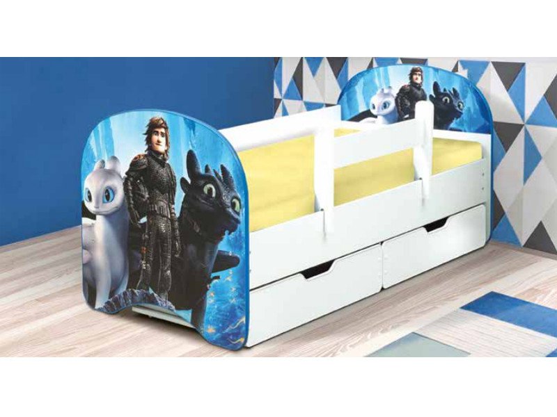 - Кровать детская с фотопечатью с 2-мя ящиками Драконы