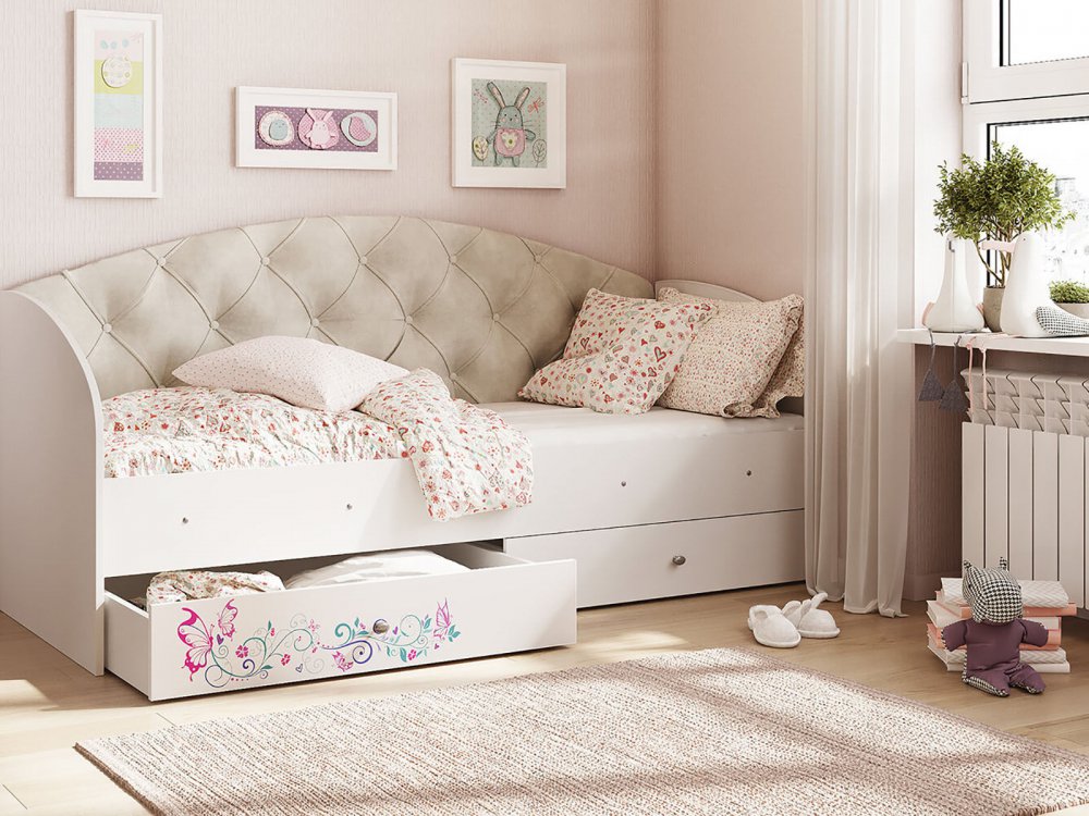 - Кровать Эльза Белый-бежевый (кофе с молоком)