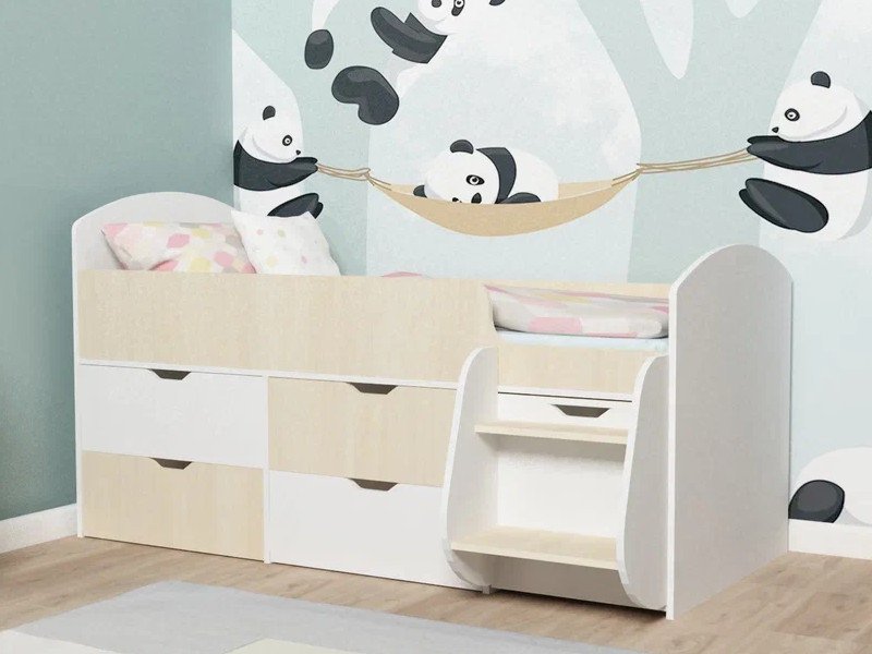 Кровать Малыш-7 белое дерево-дуб