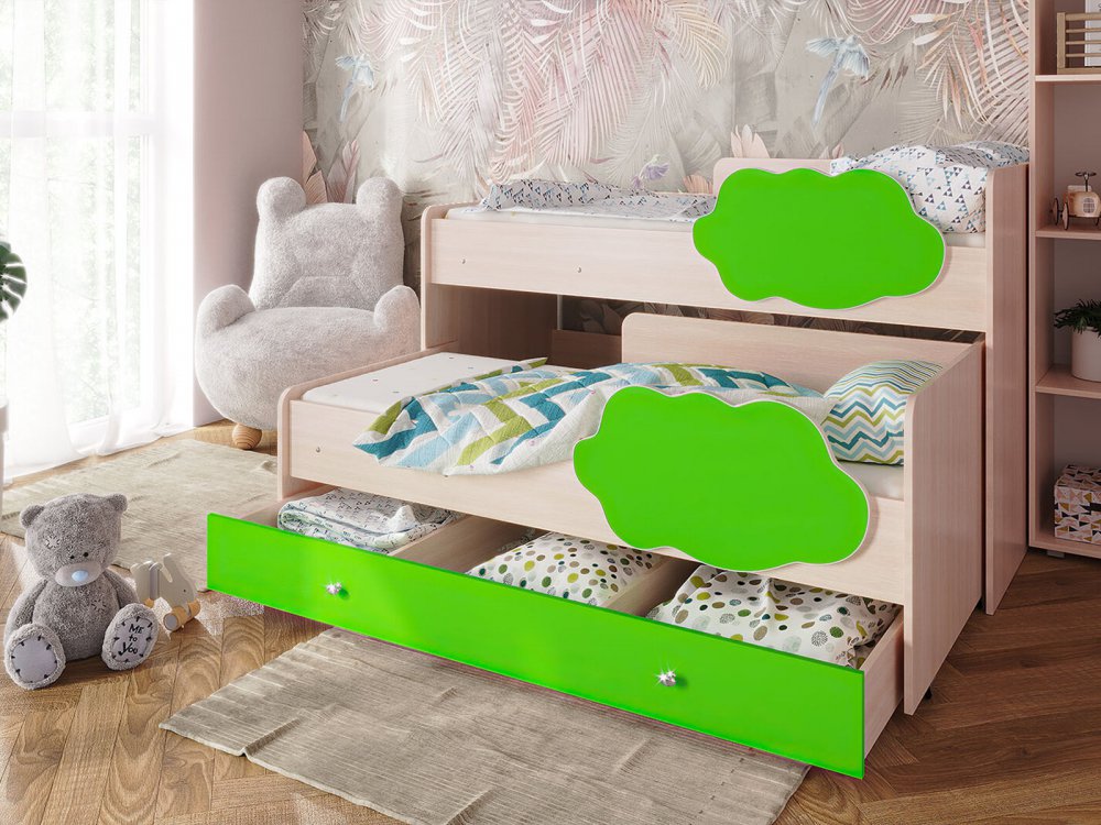 - Кровать Соник с ящиком млечный дуб-лайм