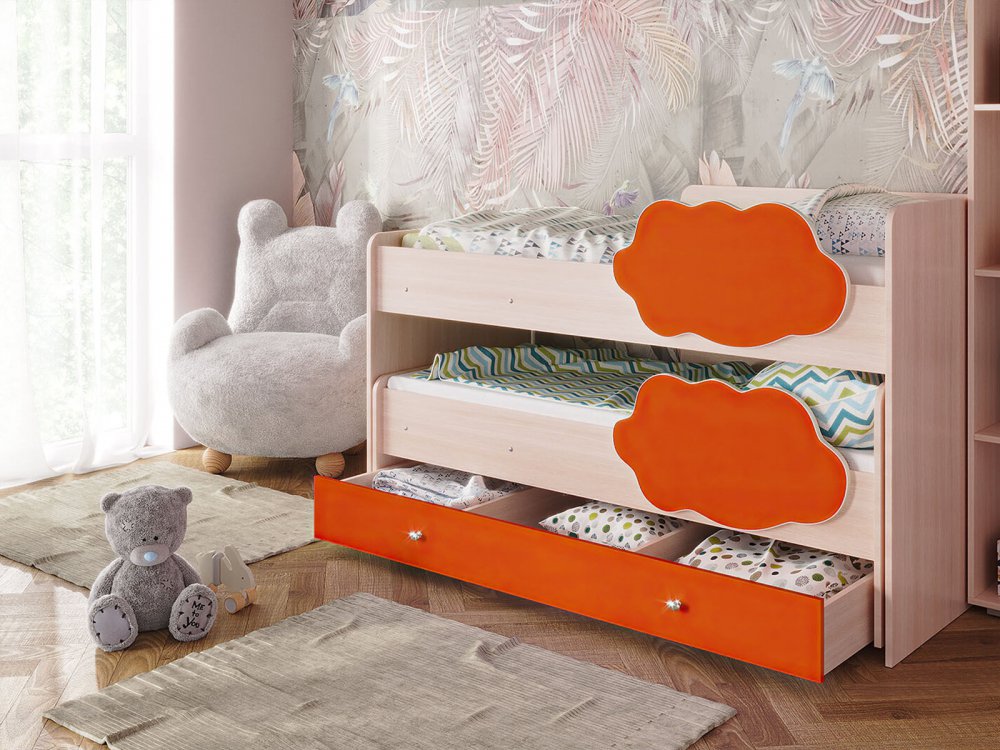 - Кровать Соник с ящиком млечный дуб с оранжевым