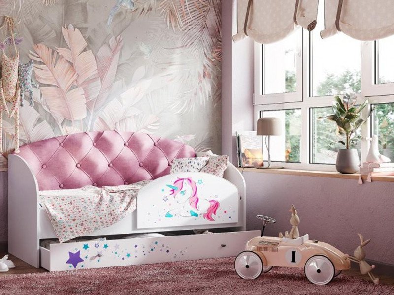 Материал: ЛДСП, спинка кровати обтянутая мягкой тканью велюр