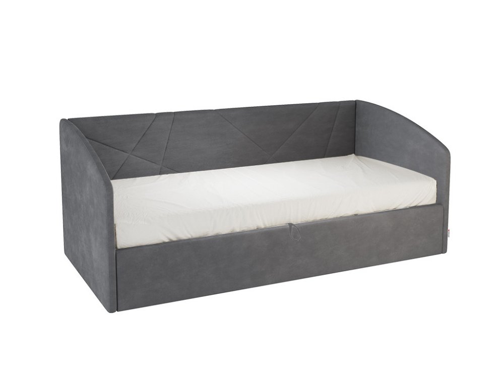 Основание подъемное входит в комплект кровати, петелька для подъема в цвет ткани на корпусе. Кровать имеет огромный ящик для хранения.