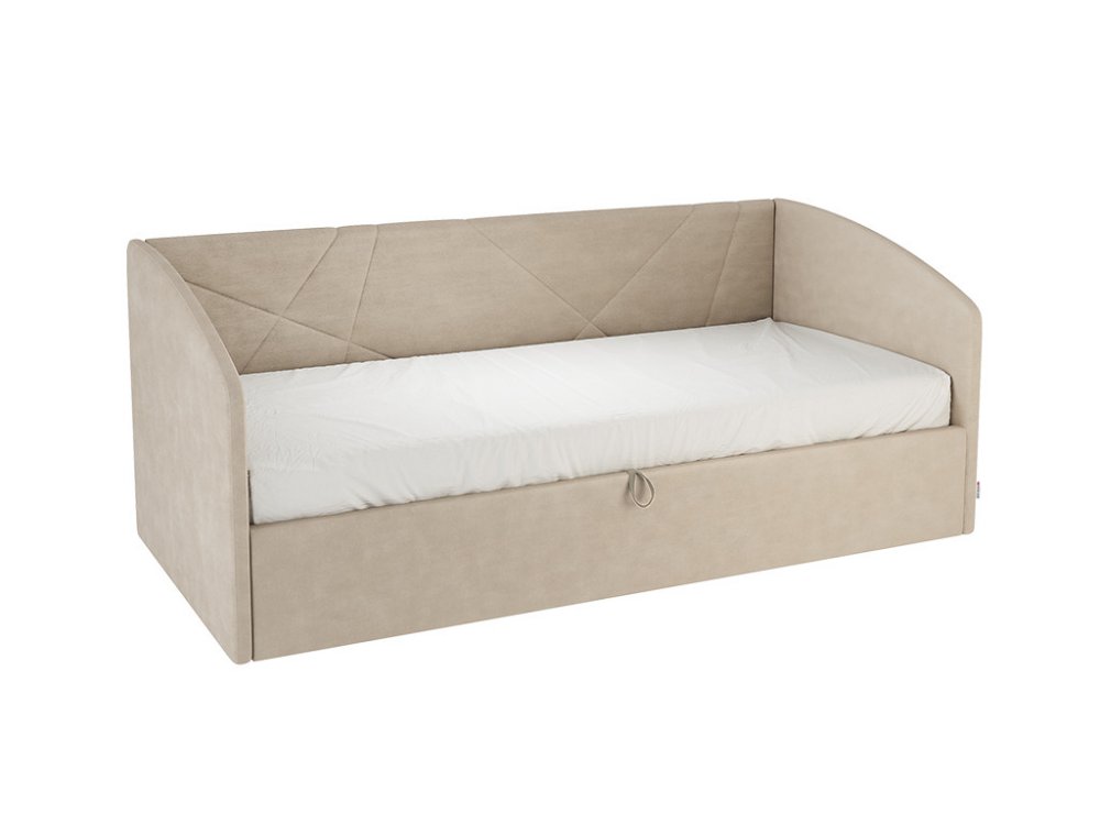 Основание подъемное входит в комплект кровати, петелька для подъема в цвет ткани на корпусе. Кровать имеет огромный ящик для хранения.