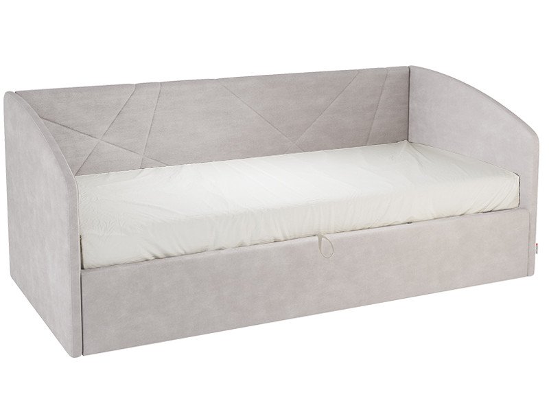 Основание подъемное входит в комплект кровати, петелька для подъема в цвет ткани на корпусе. Кровать имеет огромный ящик для хранения.