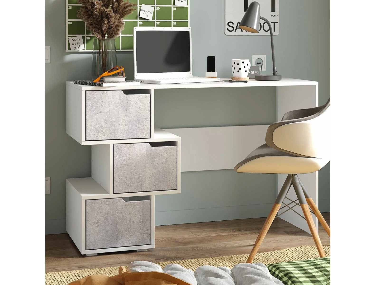 - Стол компьютерный СК 11 белый, цемент светлый