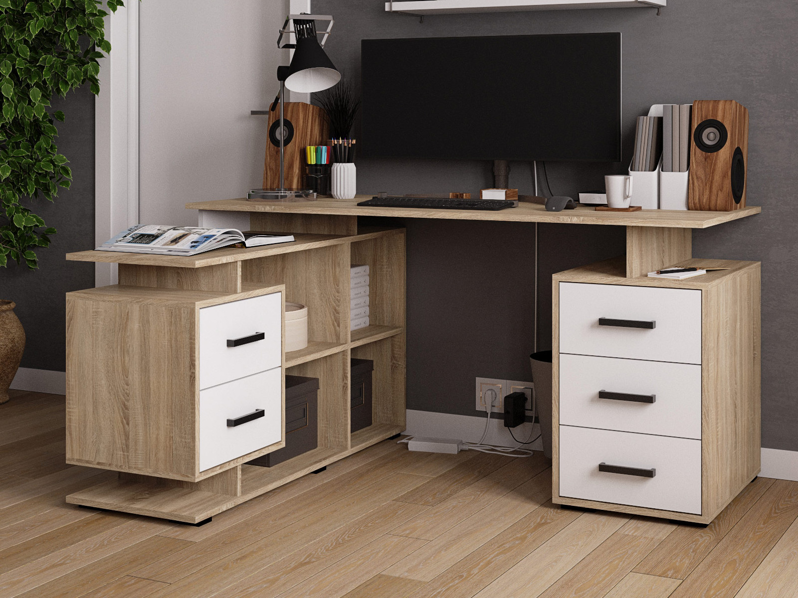 - Стол компьютерный угловой СКМУ-3 дуб сонома/белый