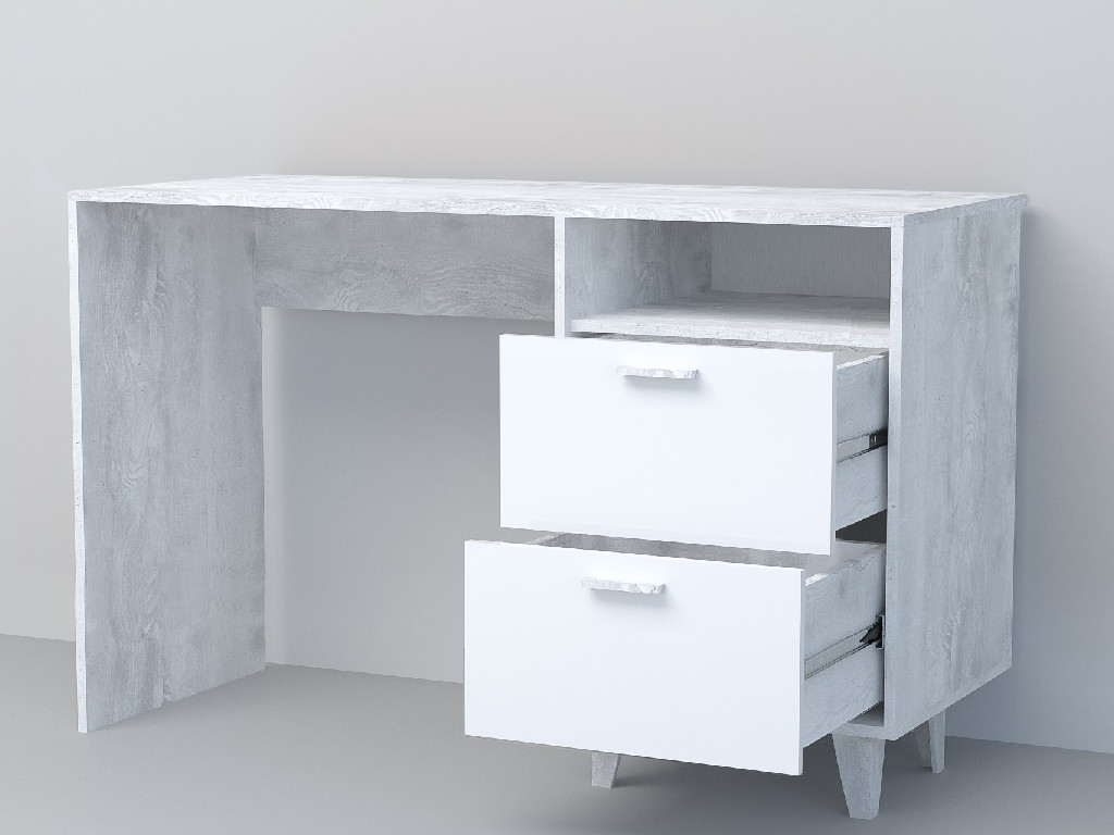 - Стол письменный Эго Ст-3 бетон светлый/белый глянец на ножках