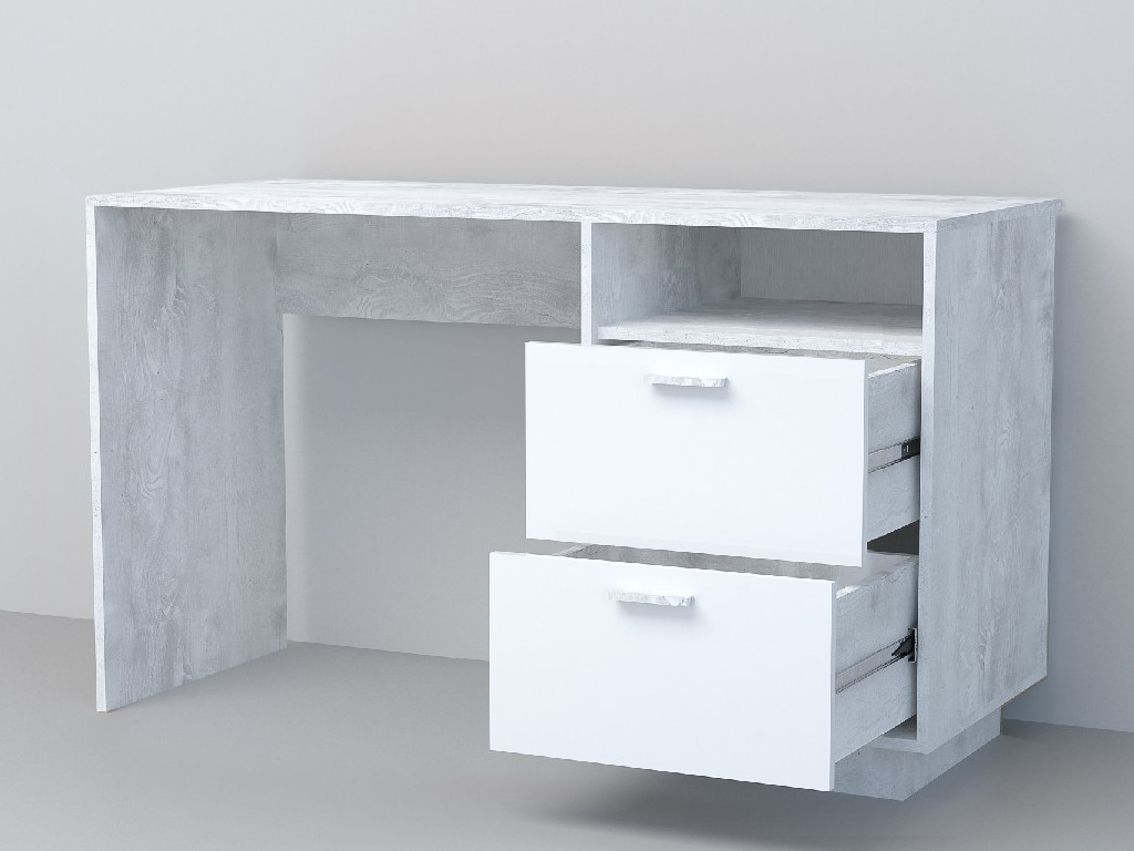 Стол письменный Эго Ст-3 бетон светлый/белый глянец на цоколе