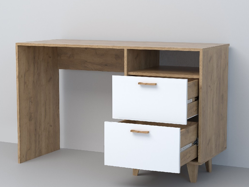 Стол письменный Эго Ст-3 дуб крафт золотой/белый глянец на ножках