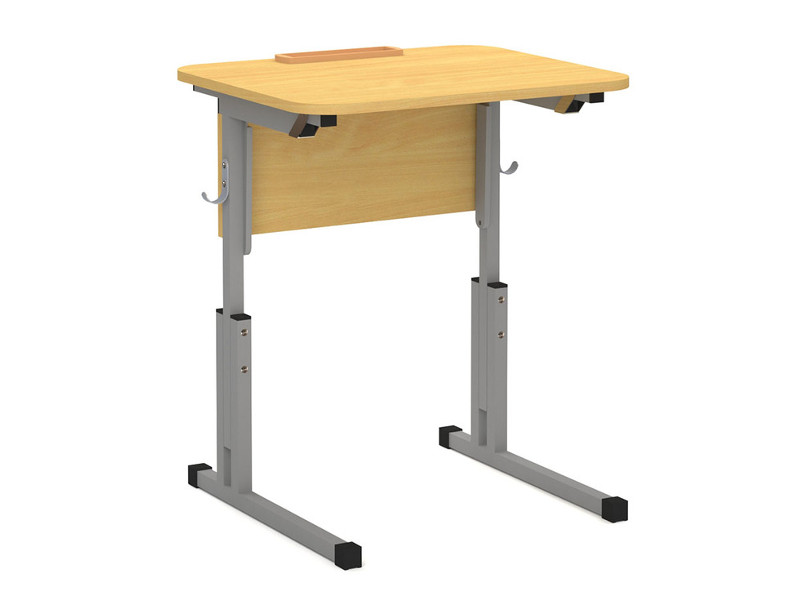 Одноместный ученический стол с закругленными углами, регулируемый по высоте.