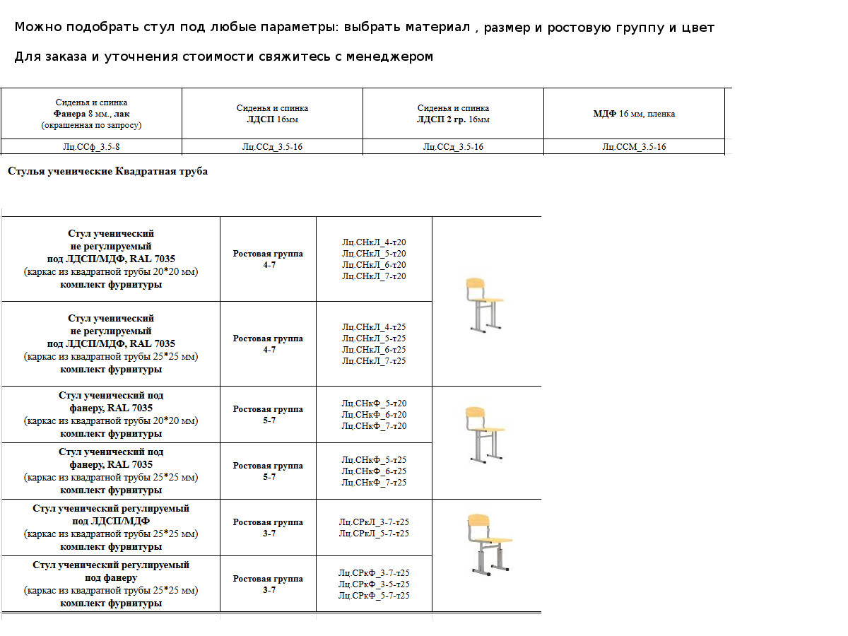 Стул ученический регулируемый по высоте предназначен для оснащения рабочего места учащегося в школах и других учебных заведениях