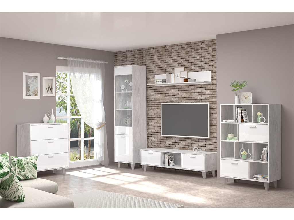 - Гостиная Эго бетон светлый/белый глянец