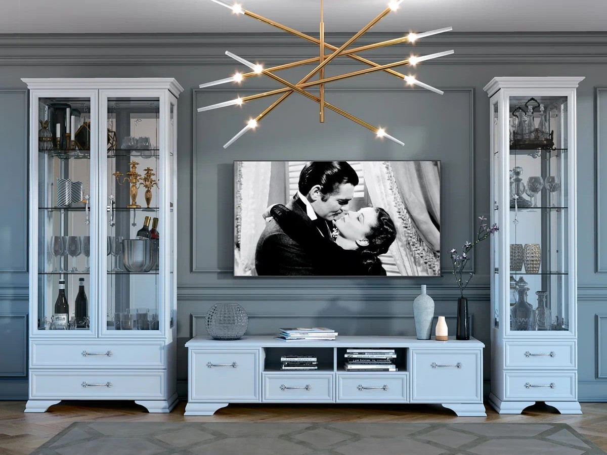 Цена за комплект: шкаф с витриной 2дв.420мм. 4 стекла, шкаф с витриной 1дв.420мм. 3 стекла, тумба для теле-и радиоаппаратуры, 2дв.+2ящ