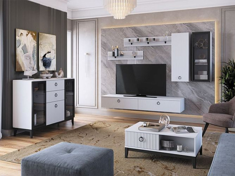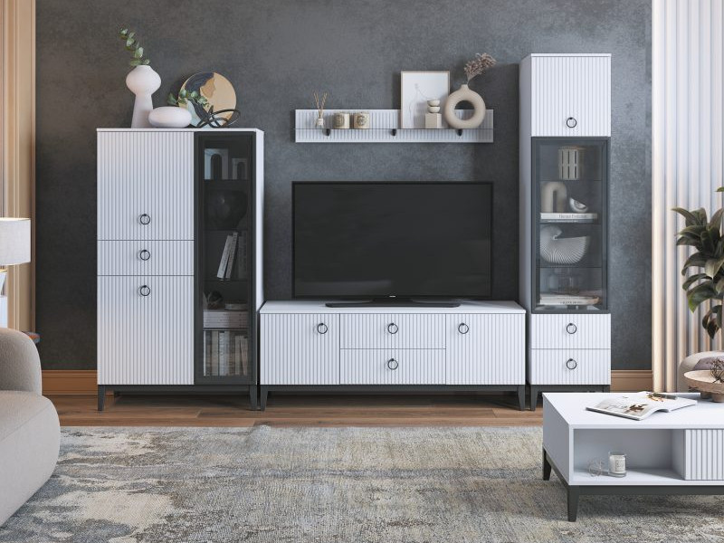 Цена за комплект: Тумба под ТВ, Полка 1200, Шкаф-витрина 450, Шкаф-витрина 900, Стол журнальный
