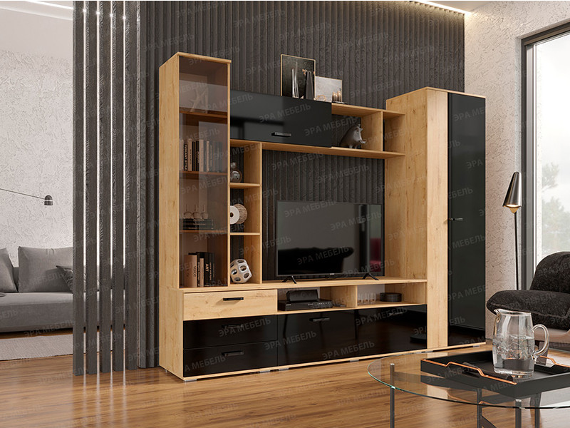 - Гостиная Крокус Дуб вотан-черный глянец