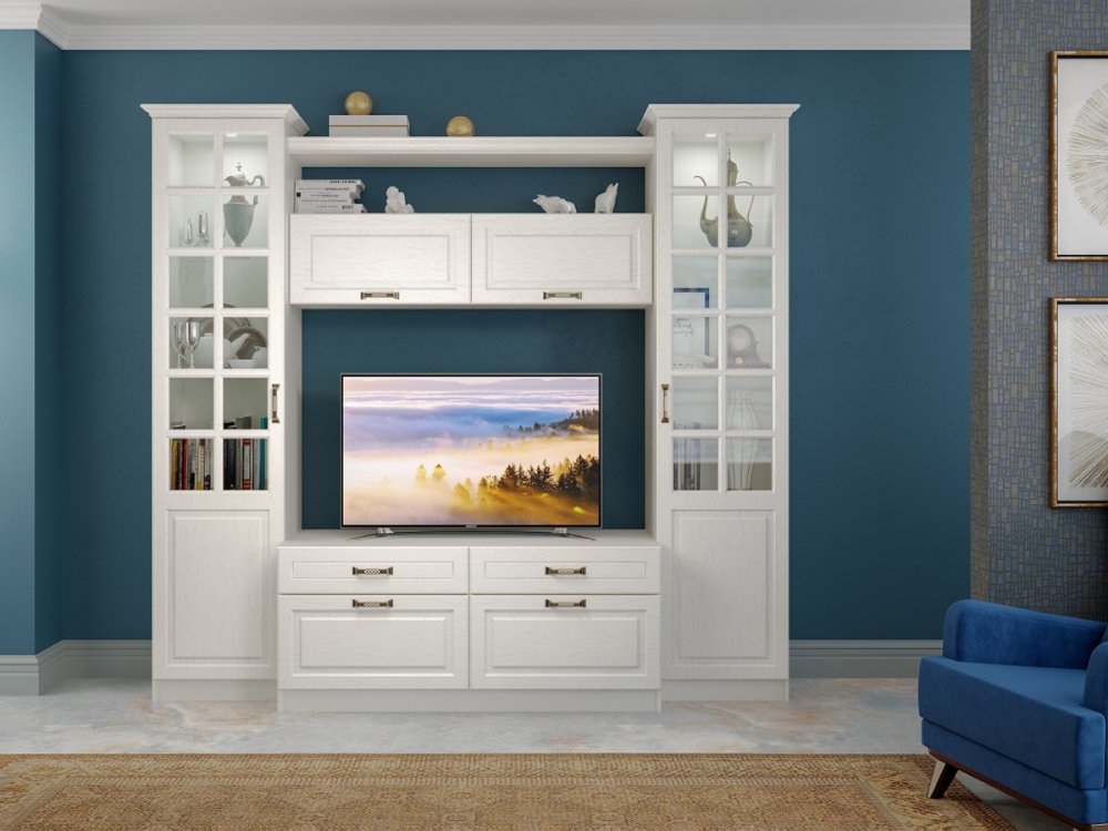 Цена за комплект на фото: Шкаф-витрина (2 шт), Тумба, Полка, Шкаф навесной