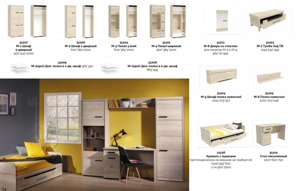 Цена за комплект: М-8 Дверь со стеклом для пенала (2 шт), М-7 Тумба под ТВ,. М-5 Шкаф-Полка навесной, М-3 Пенал узкий, М-4 Пенал широкий