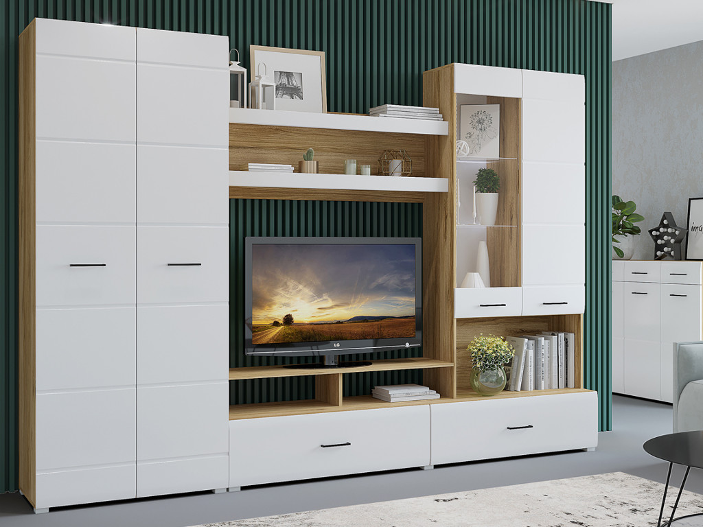 - Гостиная Ненси 1 Крафт золотой, Белый глянец