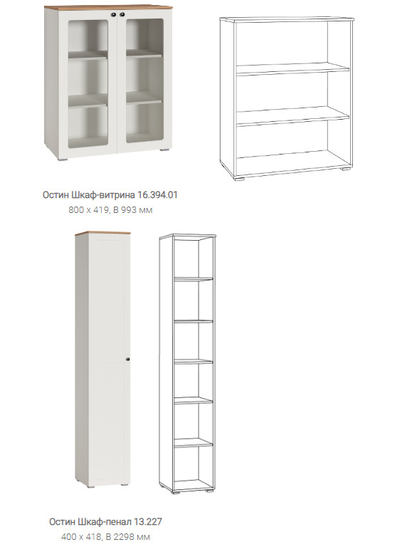 - Шкаф-витрина 16.394.02 (800 x 418, В 2298 мм) ( 72,20 кг; 0,147 м3)