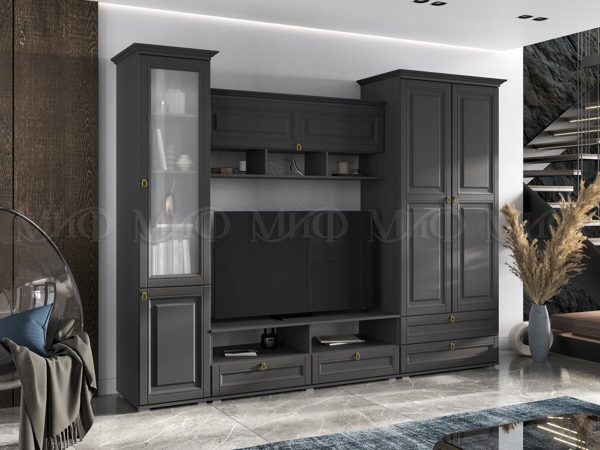 - Гостиная Престиж-1 Графит структурный