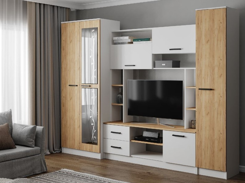 Цвет: корпус Белый с тиснением Древесной поры; фасад Дуб Крафт золотой