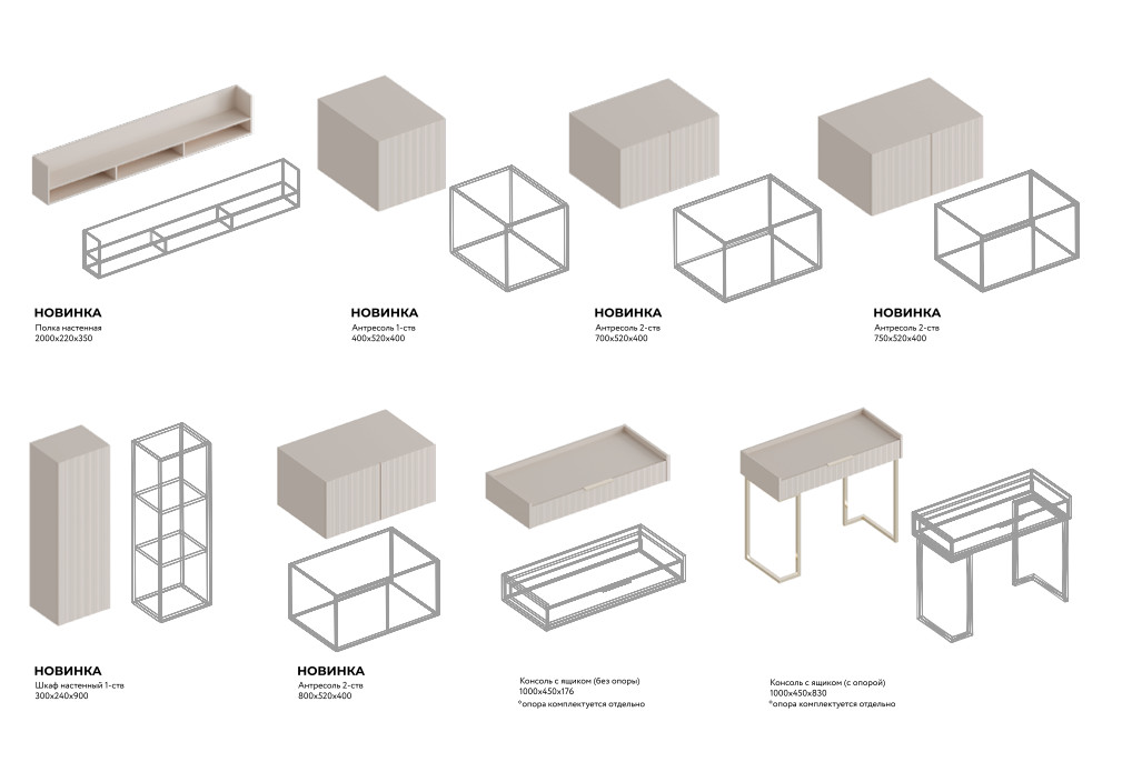 Цена за комплект: Пенал (надстройка) (2шт), Полка настенная №1, Тумба ТВ 2000, Пенал с полками (2шт)