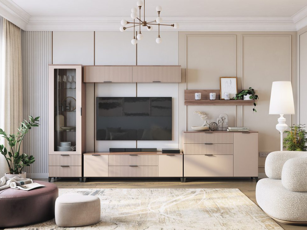 Цена за комплект: Полка (1350), Комод, Тумба под ТВ, Шкаф настенный (900) - 2 шт, Шкаф-витрина